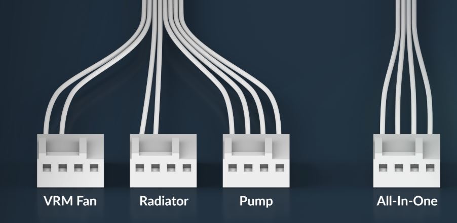 S rozdělovacím kabelem lze čerpadlo, ventilátor VRM a ventilátory chladiče ovládat samostatně nebo synchronizovat pomocí jediného PWM signálu s univerzálním kabelem.