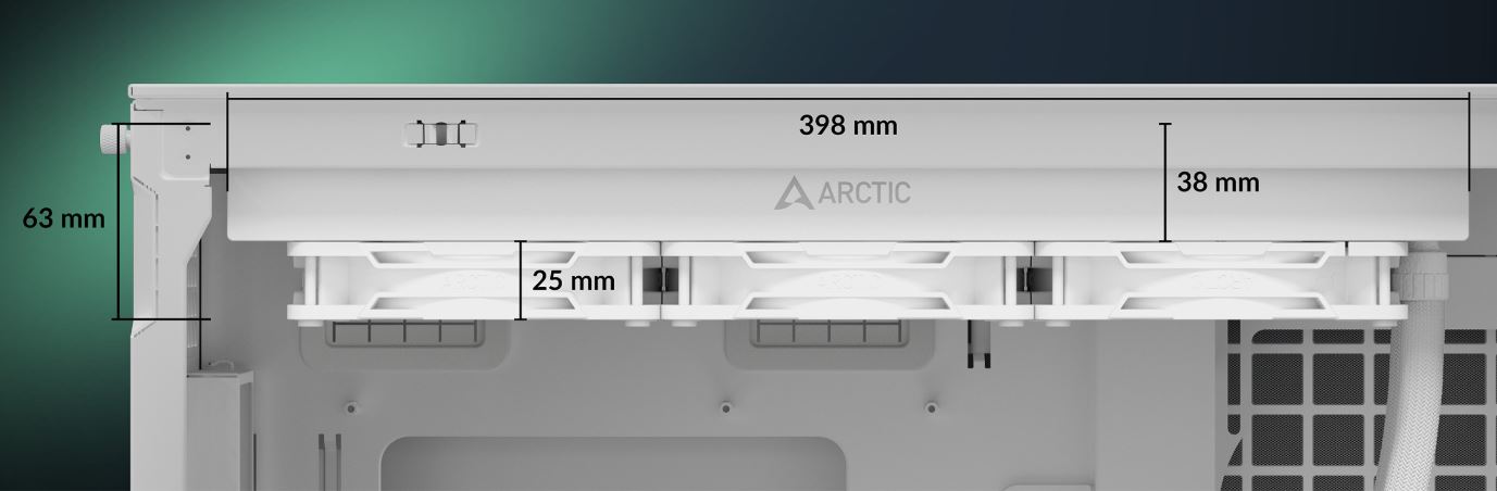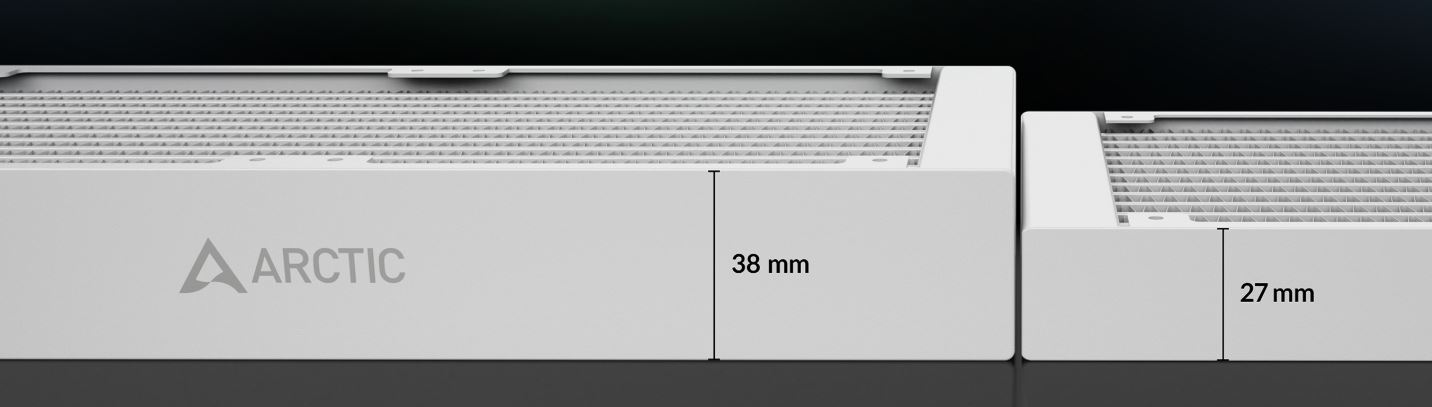 38mm chladič nejen zlepšuje odvod tepla, ale také pojme více kapaliny než běžné 27mm chladiče. To snižuje hromadění tepla a zajišťuje efektivnější zvládání teplotních skoků.