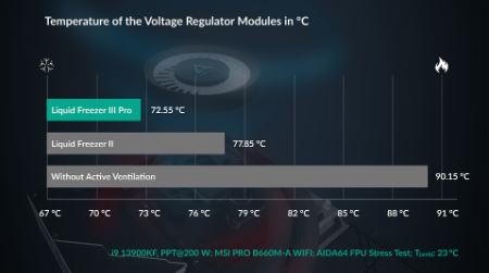 Ventilátor s PWM řízením snižuje teplotu regulátoru napětí a zajišťuje stabilní výkon.