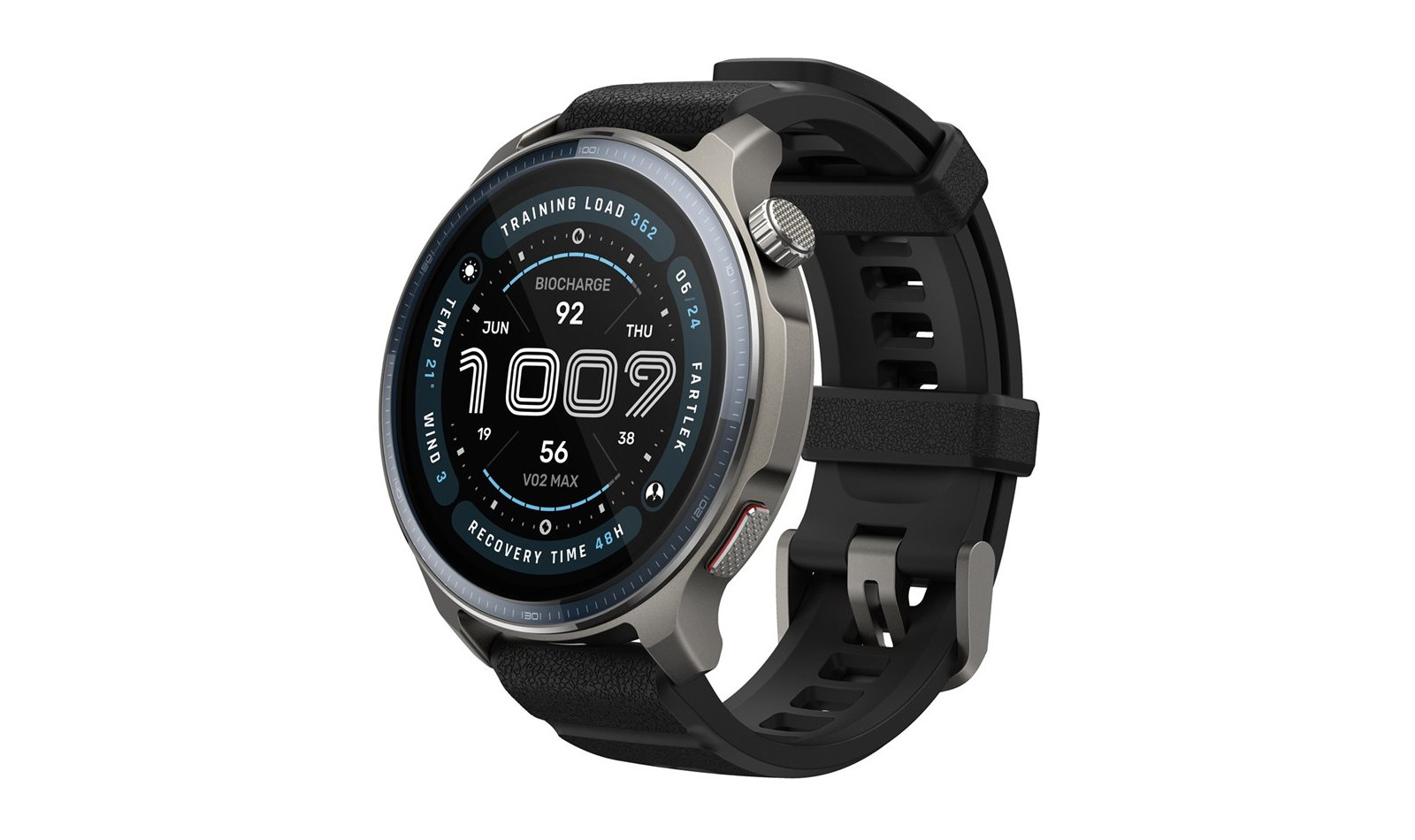Elegantní hliníkové tělo a odolný 1,5palcový displej ze safírového skla zajišťují prémiový a odolný design. Hodinky jsou vybaveny také dvěma reproduktory, které umožňují přehrávání zvukových pokynů během tréninku. Jedná se o stylové hodinky s praktickými funkcemi, které umožňují plně se soustředit na trénink a zároveň mít vše pod kontrolou.