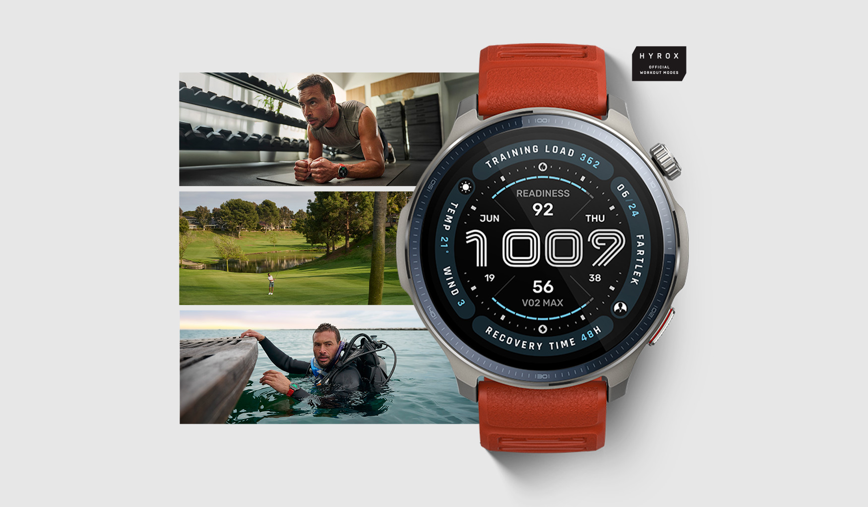 Více než 170 sportovních režimů včetně HYROX race, potápění a golfu