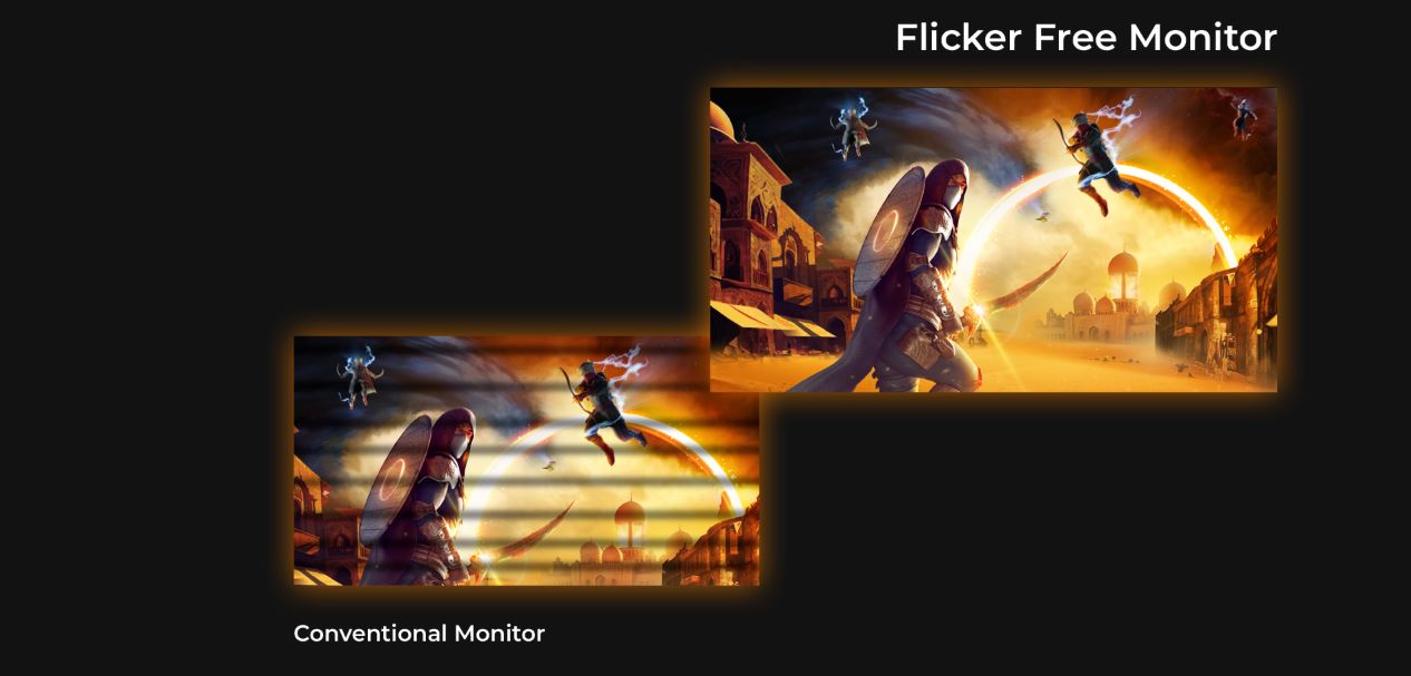 Technologie AOC Flicker-Free využívá panel s DC (stejnosměrný proud) podsvícením, redukující úrovně blikání světla. Díky absolutně minimálnímu zatížení zraku a únavě si v pohodlí užijete dlouhé a intenzivní herní relace!