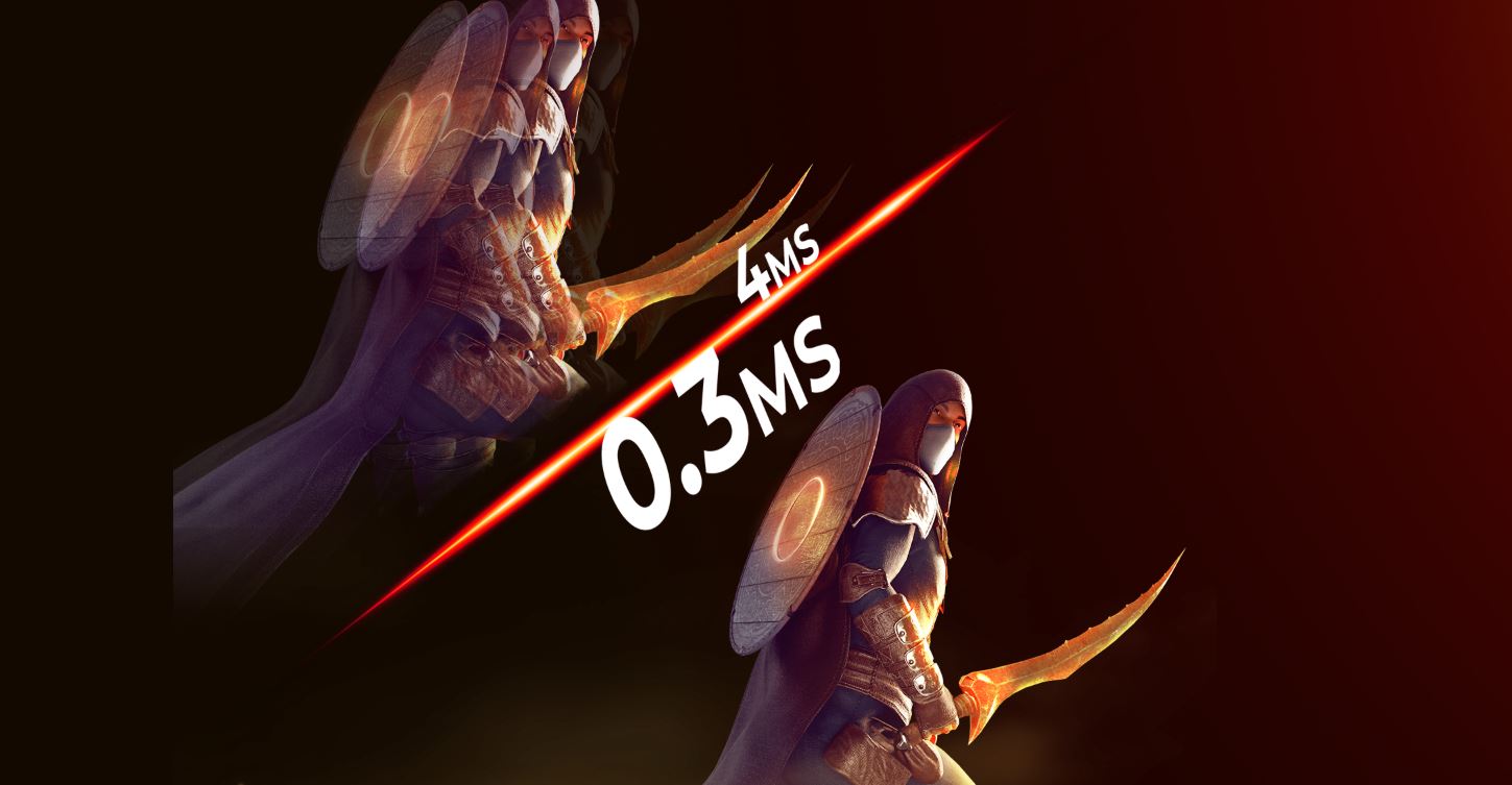 Dejte sbohem zasekávání a trhání obrazu a přivítejte plynulé a ničím nerušené hraní! Díky mimořádně rychlé obnovovací frekvenci 300 Hz máte jistotu, že váš monitor bude obnovovat obraz s neuvěřitelnou četností 300krát za sekundu. V důsledku toho budete mít k dispozici nejaktuálnější herní informace rychleji než vaši soupeři, což vám poskytne znatelnou výhodu.