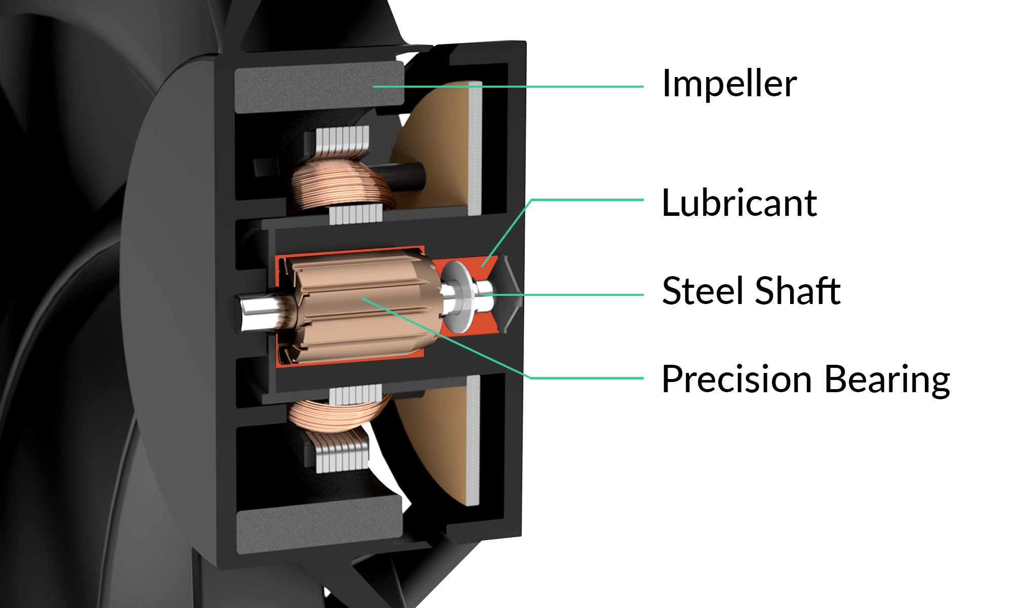 Fluidní dynamické ložisko je vybaveno olejovou kapslí, která zabraňuje úniku maziva. Díky tomu je toto ložisko stejně tiché jako kluzné ložisko, ale má výrazně delší životnost.