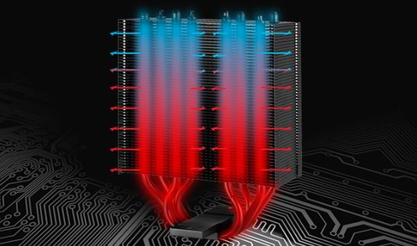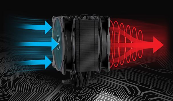 Věžový chladič CPU s ventilátory BioniX řady P v konfiguraci Push-Pull.