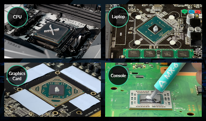 Díky svému novému složení je MX-6 vhodnou tepelnou pastou pro mnoho scénářů použití. Vynikající vlastnosti zabraňující vysychání a vytečení zajišťují dlouhodobý konzistentní výkon. Její viskozita zabraňuje úniku v důsledku efektu Pump-Out. Je také vhodná pro přímé chlazení čipů, k němuž dochází například u grafických karet nebo procesorů GPU v konzolích.