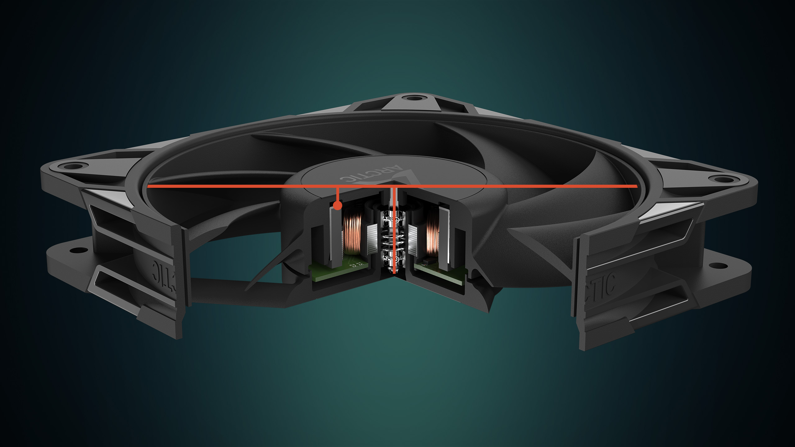 Ventilátor poskytuje vyšší výkon při nízkých otáčkách s vyšším průtokem vzduchu a statickým tlakem při pouhých 25 dB(A) – ideální pro tiché a výkonné chlazení.