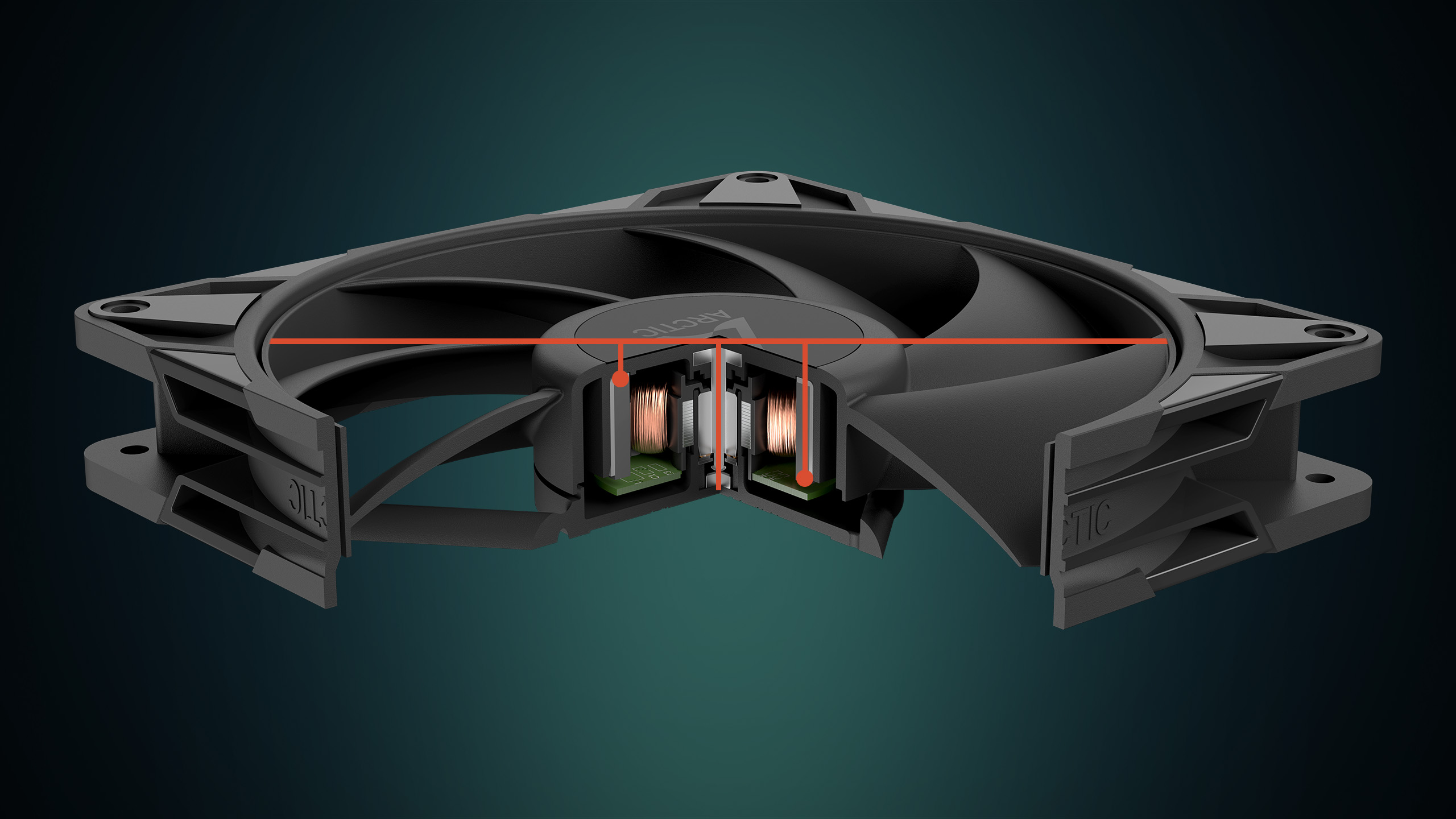 Ventilátor poskytuje vyšší výkon při nízkých otáčkách s vyšším průtokem vzduchu a statickým tlakem při pouhých 25 dB(A) – ideální pro tiché a výkonné chlazení.