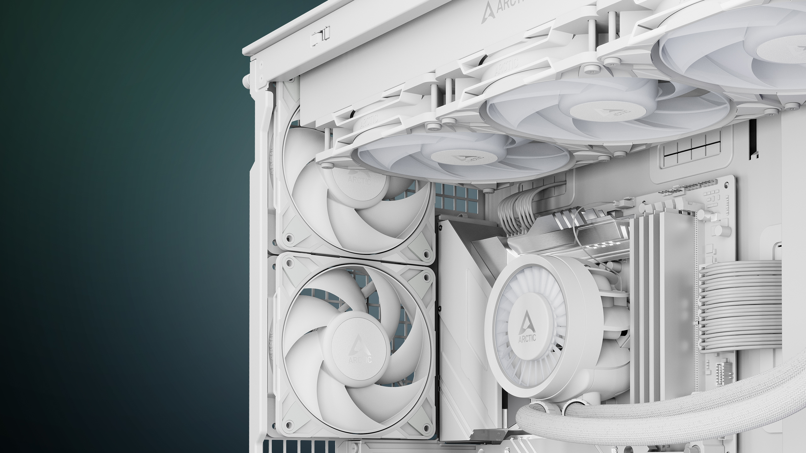 Ventilátor poskytuje vyšší výkon při nízkých otáčkách s vyšším průtokem vzduchu a statickým tlakem při pouhých 25 dB(A) – ideální pro tiché a výkonné chlazení.