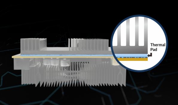 Díky nízké tuhosti a dobrým kompresním vlastnostem tepelná podložka funguje jako perfektní výplň mezer a snadno překlenuje nerovné povrchy a vzduchové mezery.