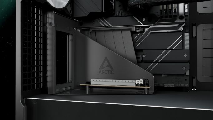 Umožňuje vertikální instalaci grafické karty pomocí 160mm rozšiřujícího kabelu PCIe Gen 4.