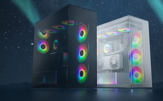 Velká okna z tvrzeného skla poskytují jasný výhled na hardware.