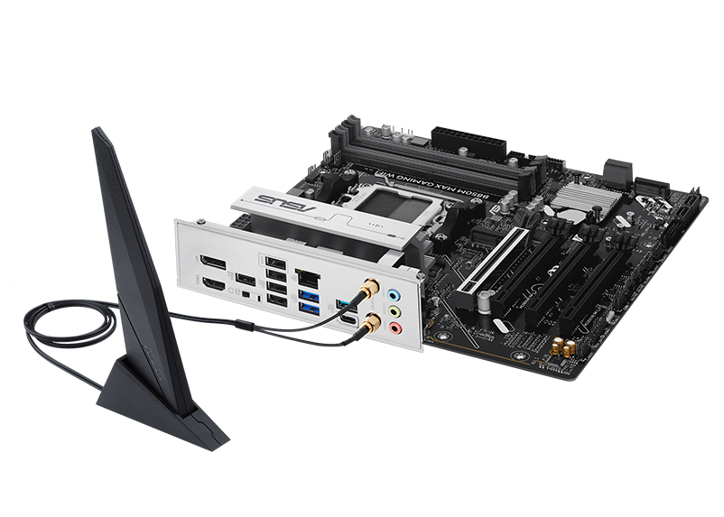 Modul WiFi 6 je kompatibilní se standardem 802.11ax a dosahuje teoretické maximální šířky pásma až neuvěřitelných 1,2 Gb/s. Pro náročné uživatele je možná ještě důležitější, že je optimalizován pro efektivnější provoz v přeplněných sítích s velkým množstvím konkurenčního provozu. Spárujte základní desku s routery ASUS WiFi 6 a naplno si vychutnejte síťový potenciál WiFi 6.