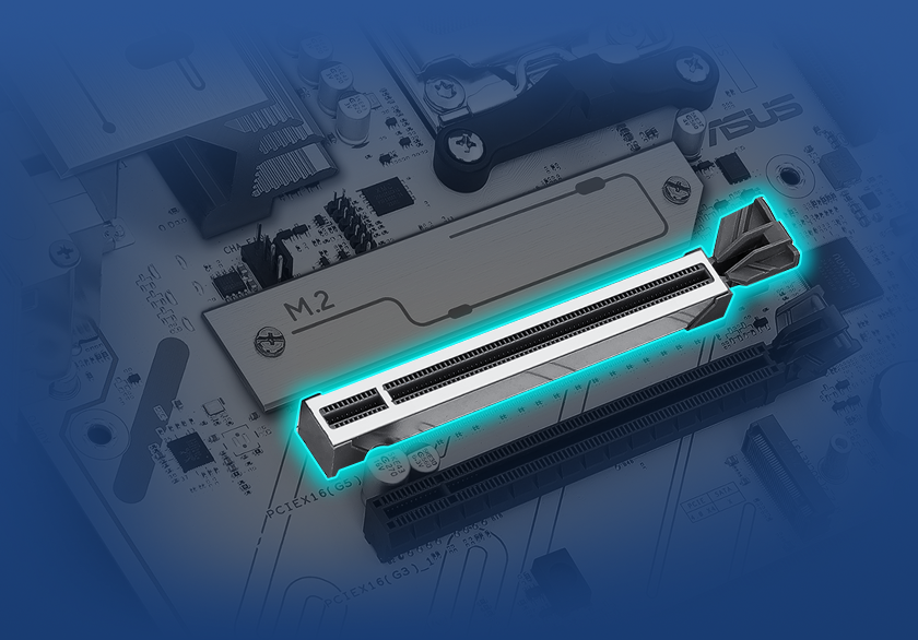 PCIe 5.0 je dvakrát rychlejší než PCIe 4.0. Společnost ASUS přizpůsobila naši výrobu SMT pro rychlejší SafeSlot, zesílený kovový plášť, který zajišťuje bezpečnou instalaci karty a vyšší rychlost přenosu dat.