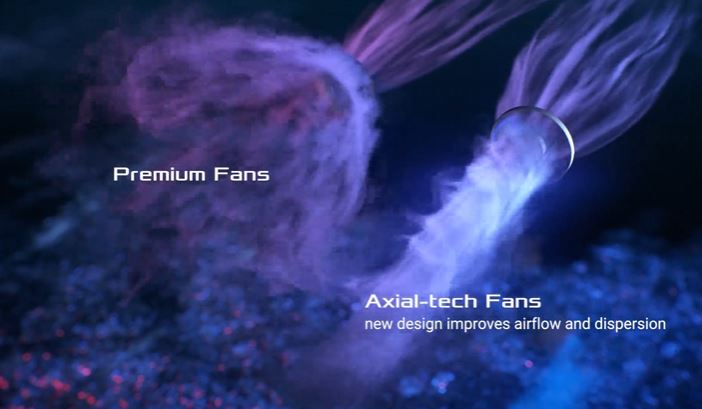 Dva osvědčené ventilátory Axial-tech mají menší náboj, který usnadňuje použití delších lopatek, a bariérový kroužek, jenž stlačuje vzduch směrem dolů.