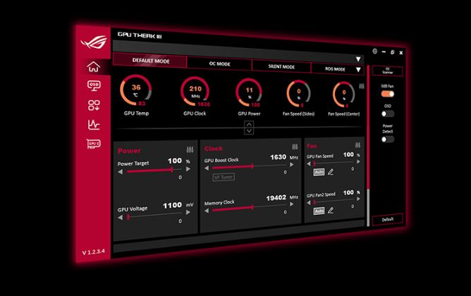 Nástroj ASUS GPU Tweak III posouvá ladění grafické karty na novou úroveň. Umožňuje vám upravit kritické parametry, včetně taktu jádra GPU, frekvence paměti a nastavení napětí, s možností sledovat vše v reálném čase prostřednictvím přizpůsobitelného zobrazení na obrazovce. Součástí je také pokročilé ovládání ventilátorů spolu s mnoha dalšími funkcemi, které vám pomohou vytěžit z vaší grafické karty maximum.