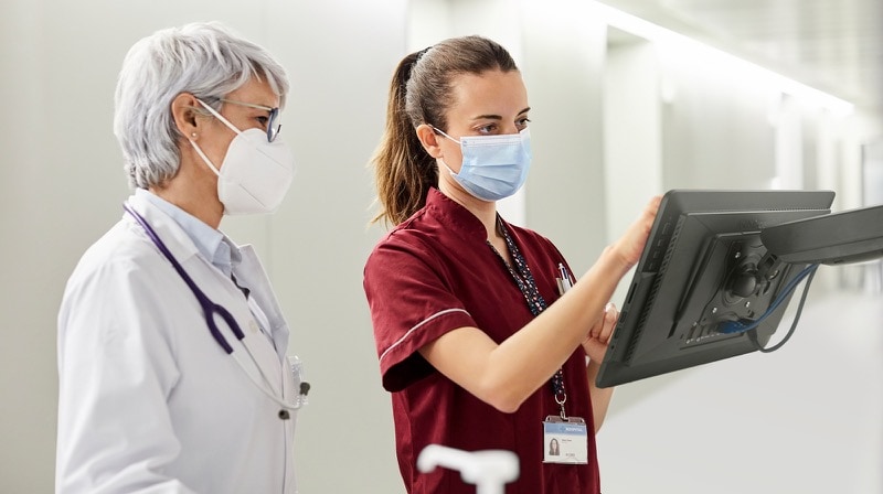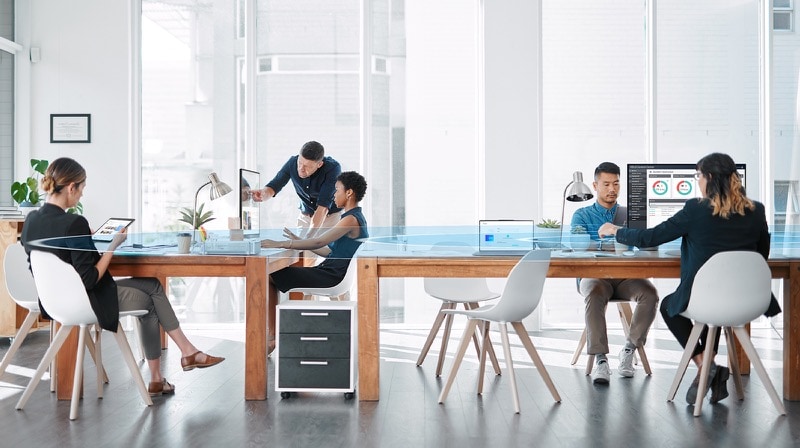 ExpertCenter E1 AiO je maximálně všestranný. Jeho 15,6palcová multidotyková obrazovka umožňuje plynulé a citlivé interaktivní zážitky, zatímco díky kompaktním rozměrům se vejde na prodejní pult nebo na přijímací přepážku v nemocnici. Dokonce ho můžete zavěsit na zeď díky standardnímu VESA držáku. Zkrátka, E1 AiO je připraven pracovat tam, kde potřebujete, a tak, jak potřebujete.