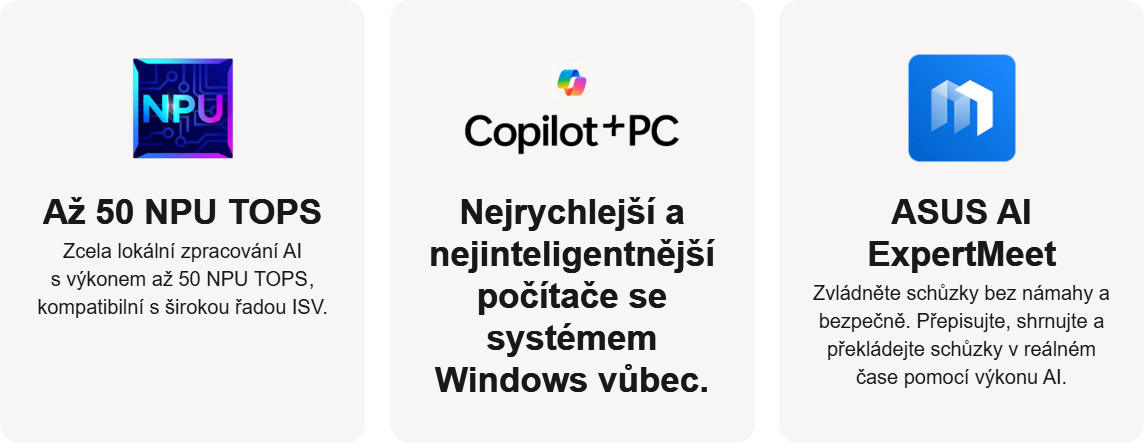 Podpořte kreativitu a posuňte inovace v podnikání na novou úroveň s počítači Copilot+, nejrychlejšími, nejinteligentnějšími a nejbezpečnějšími počítači se systémem Windows vůbec. Počítače Copilot+ jsou připraveny pro moderní řízení, výkonné zabezpečení dat a hybridní scénáře s umělou inteligencí.