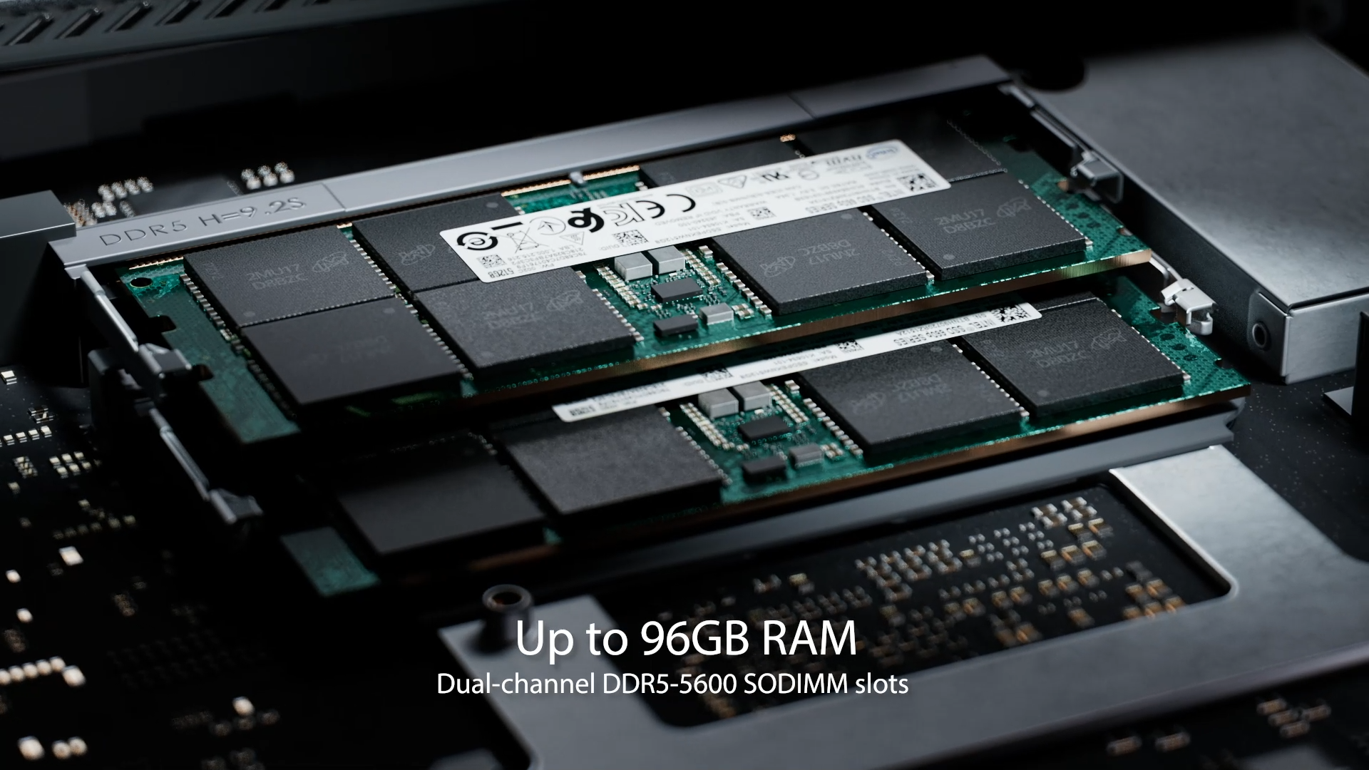 ROG GR70 se vyznačuje designem s rychlým přístupem, který hráčům umožňuje snadnou instalaci další paměti. Stačí zarovnat spodní hranu DDR5 SO-DIMM s klíčem na slotu SO-DIMM a poté zatlačit DDR5 SO-DIMM dolů, dokud západky nezacvaknou na místo.