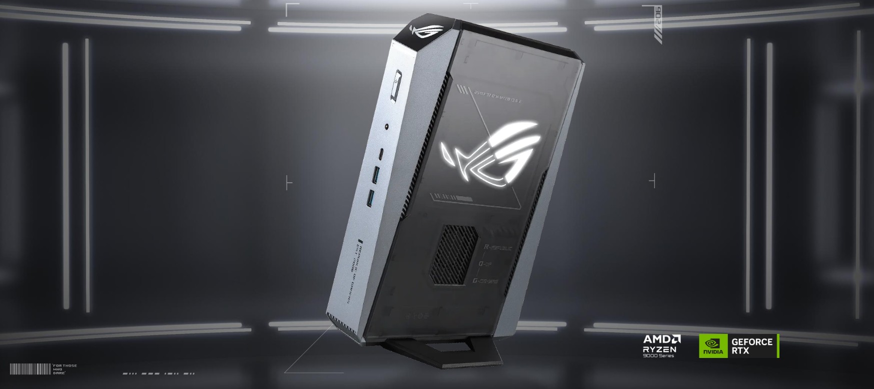 ROG GR70 popírá konvence a očekávání toho, jak by měl vypadat mini herní počítač. GR70 nabízí průlomový herní výkon díky nejnovějšímu procesoru AMD Ryzen™ řady 9 s pokročilou technologií 3D V-Cache a grafické kartě NVIDIA® GeForce RTX™ pro notebooky. Proprietární technologie chlazení se třemi ventilátory a účinným tepelným pokrytím udržuje teplotu pod kontrolou i v těch nejvyhrocenějších bitvách a zároveň zajišťuje bleskurychlý výkon.