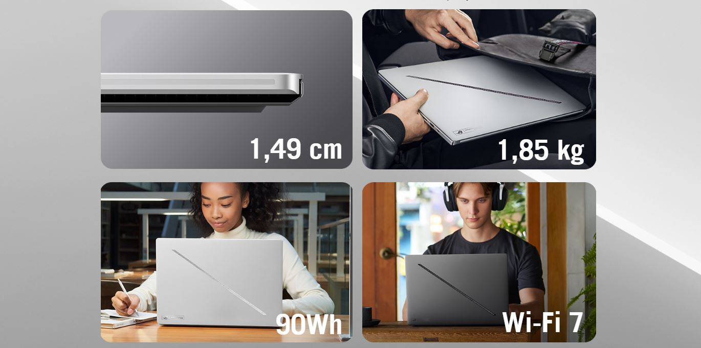 Zephyrus G16 byl vždy charakteristický svou přenosností a model pro rok 2025 není výjimkou. Tento úžasný herní stroj je skutečně tenký a lehký, váží pouhých 1,85 kg a některé modely mají tloušťku pouhých 1,49 cm. V kombinaci s 90Wh baterií, která podporuje rychlé nabíjení z 0 na 50 % za pouhých 30 minut, a podporou bezdrátových sítí Wi-Fi 7 představuje Zephyrus G16 dokonalý stroj k hraní i práci pro ty, kteří jsou často na cestách.
