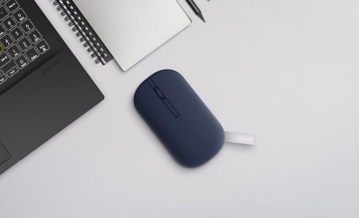 Symetrická myš ASUS Marshmallow Mouse MD100 Lite je ideální pro praváky i leváky. Váží pouhých 56 gramů a je vybavena skrytým poutkem pro přenášení, které si můžete pohodlně navléknout na prst třeba při přesunu z pracoviště do zasedací místnosti. 3cm tenká.