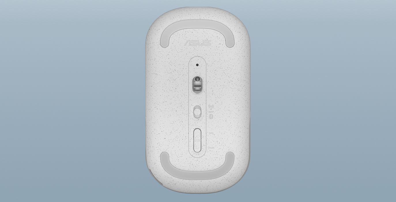 Symetrická myš ASUS Marshmallow Mouse MD100 Lite je ideální pro praváky i leváky. Váží pouhých 56 gramů a je vybavena skrytým poutkem pro přenášení, které si můžete pohodlně navléknout na prst třeba při přesunu z pracoviště do zasedací místnosti.