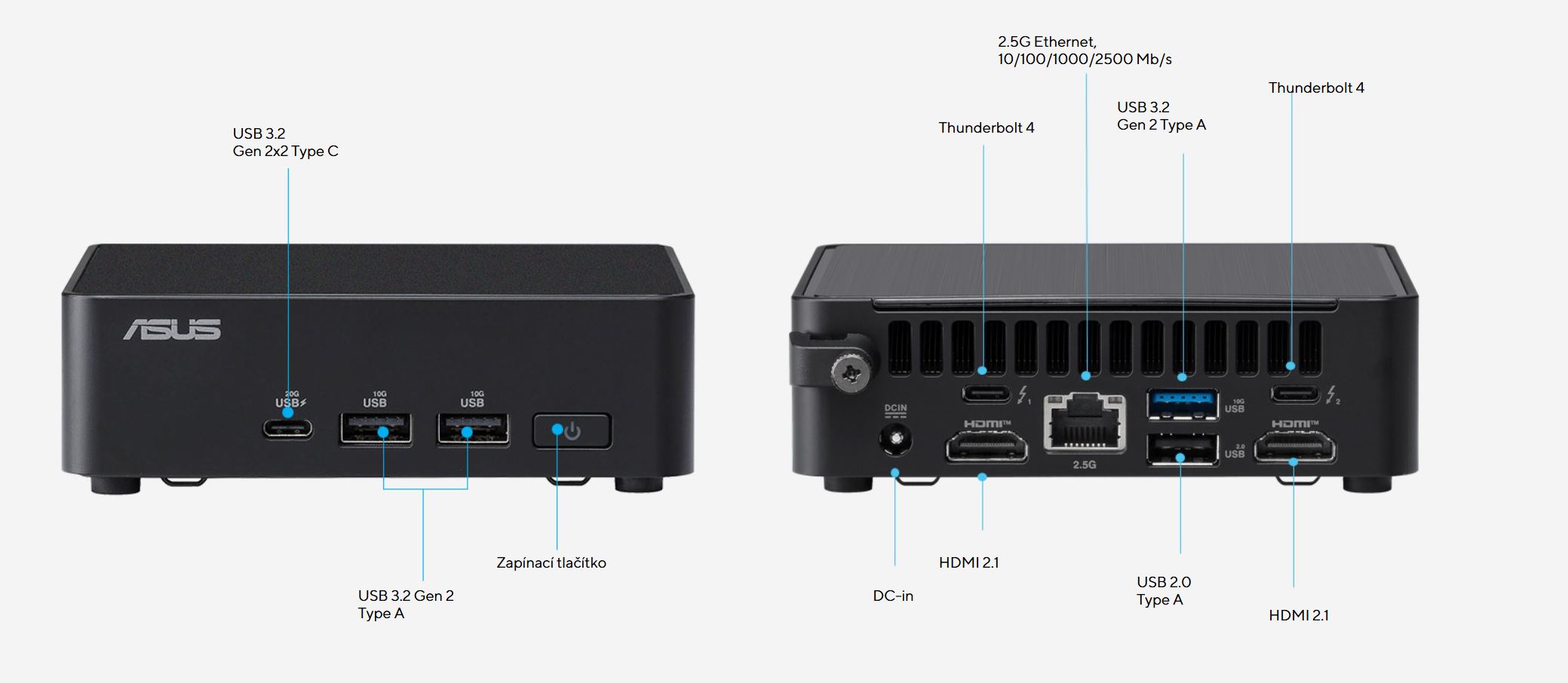 ASUS NUC 14 Pro nabízí nejlepší výkon ve své kategorii díky zcela nové řadě procesorů Intel® Core™ Ultra. Jde o nejkomplexnější mini PC s Intel vPro® Enterprise* (Intel® Core™ Ultra 7 165H/Core™ Ultra 5 135 H) zaručující výjimečné zabezpečení, možnosti správy a stabilitu. Díky certifikované Bluetooth® konektivitě bez donglu a třem AI enginům - GPU, NPU a CPU - pro vysokou propustnost, nízkou spotřebu a rychlou odezvu poskytuje ASUS NUC 14 Pro robustní výpočetní schopnosti. Je vybaven funkcí snímání Wi-Fi garantující inteligentní energetickou účinnost a "osvědčeným a spolehlivým" šasi o rozměrech 4 × 4 palce, které je navrženo pro přístup bez použití nářadí pro snadnější, bezpečnější a rychlejší upgrade.