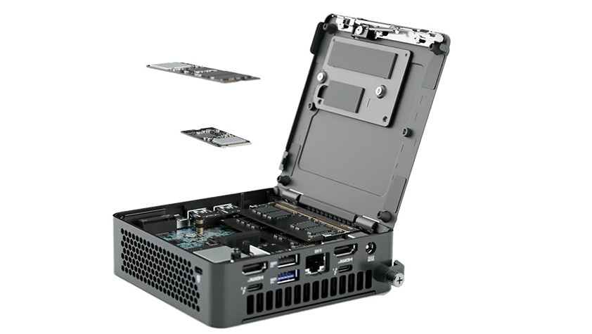 Minimalizujte dobu nečinnosti s počítačem ASUS NUC 15 Pro, který je vybaven inovativním provedením s pákovým kloubem, umožňující rychlý a pohodlný upgrade RAM nebo úložiště. Jeho další interní headery a rozšiřující příslušenství umožňují uživatelům přizpůsobit si mini PC pro všechny potřeby firmy.