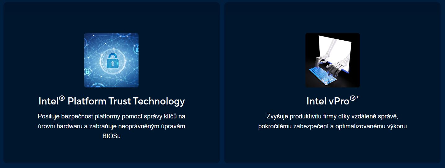 V době hybridních pracovních prostředí je bezpečnost důležitější než kdykoli předtím. Díky Intel vPro® a Intel Platform Trust Technology (PTT) nebyla správa zabezpečení firemních operací nikdy jednodušší.