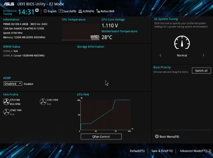 Režim EZ zobrazuje důležitá nastavení a statistiky a nabízí také průvodce, funkci drag-and-drop a použití důležitých nastavení jedním kliknutím - to vše vám pomůže uvést zařízení do provozu během okamžiku. Jednotlivá nastavení ventilátoru vyladíte jednoduše přetažením křivky myší. Snadno zapněte nebo vypněte osvětlení Aura RGB nebo každou vestavěnou LED diodu, abyste dosáhli tlumeného estetického vzhledu.