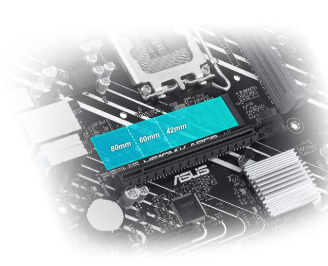 Základní deska PRIME H610M-K ARGB nabízí jeden slot M.2, který podporuje rychlost přenosu dat až 32 Gb/s prostřednictvím rozhraní PCIe 3.0, což umožňuje rychlejší spouštění systému a načítání disku s operačním systémem nebo disku s aplikacemi.