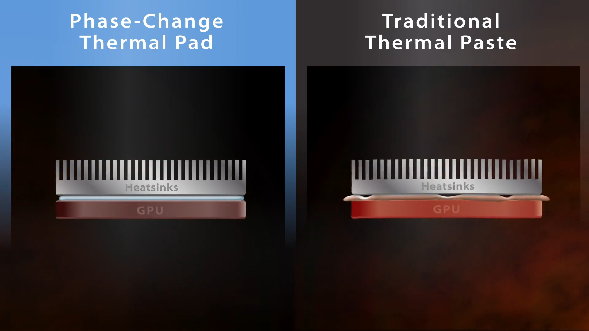 Prémiová tepelná podložka GPU s fázovým přechodem, která se rozpustí a účinně tím vyplní mezery mezi GPU a chladicím modulem, poskytuje vynikající tepelnou vodivost a lepší odvod tepla. Díky tomu zajišťuje optimální výkon a dlouhou životnost grafických karet při vysokém zatížení.