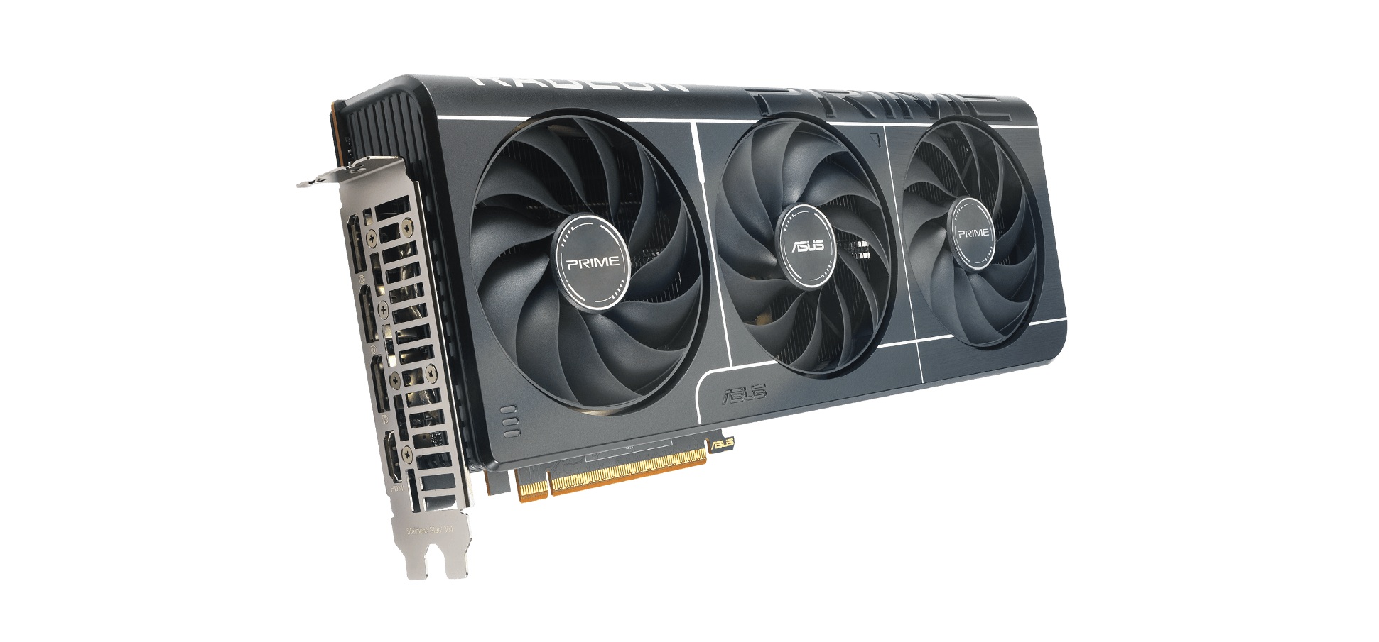 Karta Prime Radeon™ RX 9070 má provedení zabírající 2,5 slotu s jasným uspořádáním krytu, chladiče a teplovodivých trubic, aby tři ventilátory Axial-tech mohly využívat ventilaci na bočním panelu šasi, a zajistit tím optimální chladicí výkon.