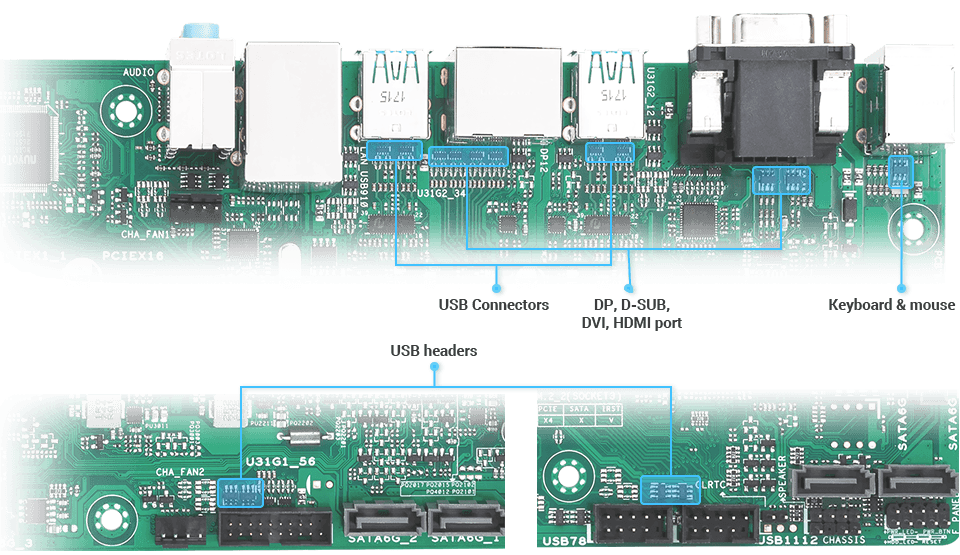 Hlavička ASUS Debug je 10-1 pinová hlavička s nízkým počtem pinů (LPC) pro připojení ladicích karet pro rychlejší a efektivnější řešení problémů na základní desce. Po připojení k ladicí kartě ASUS mohou správci zobrazit chybové a ladicí kódy na integrovaném displeji LCD a získat lepší představu o procesech inicializace a obnovy. Firemní základní desky ASUS poskytují kompletní řešení pro odstraňování problémů, díky čemuž je hromadná výroba rychlejší a nákladově efektivnější.