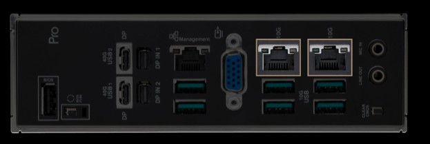 Základní deska Pro WS WRX90E-SAGE SE je vybavena dvěma vestavěnými 10G LAN porty, které jsou napájeny špičkovým ethernetovým řadičem Intel X710-AT2. Díky tomu umožňuje kratší dobu přenosu mnoha terabajtů dat a poskytuje připojení serverové úrovně s nízkou latencí.