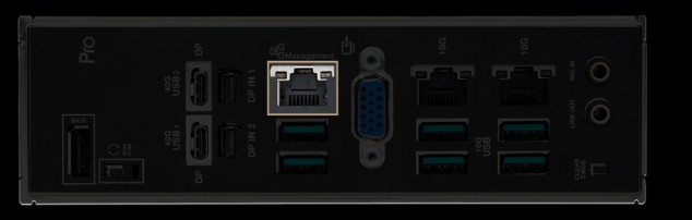 Model Pro WS WRX90E-SAGE SE je vybaven ethernetovým portem, který zajišťuje rychlé přenosy dat současně pro streamování internetu rychlostí 1 Gb/s do integrovaného řadiče správy základní desky.