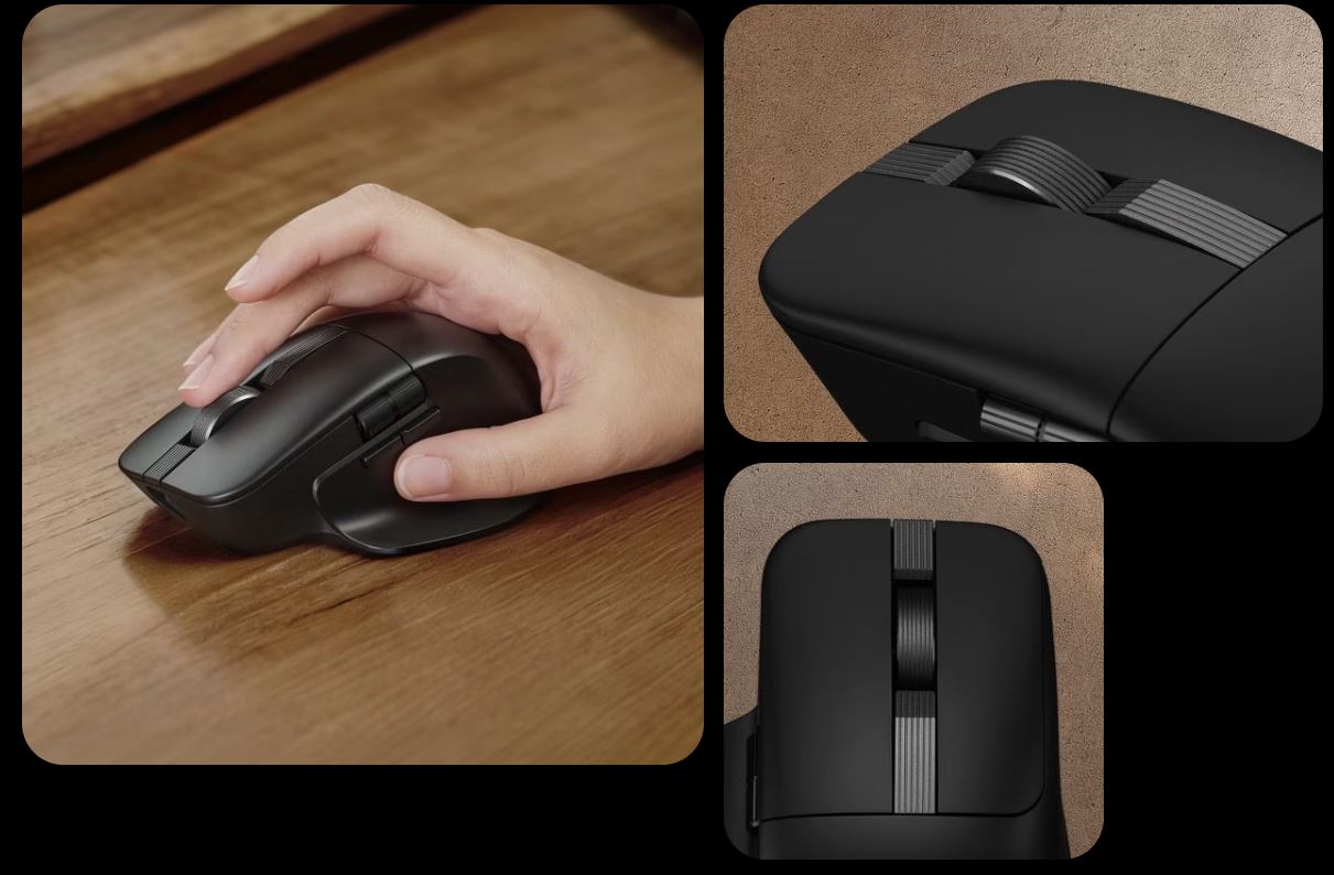 Myš ProArt Mouse MD301 se může pochlubit ergonomickým provedením a vyměnitelnými levým a pravým tlačítkem, která podporují jak mikrospínače, tak optické spínače. To vám umožňuje přizpůsobit citlivost kliknutí a prodloužit životnost myši. Kolečko SmartShift Wheel zaručuje bleskové procházení dlouhých stránek a výrazně zvyšuje produktivitu. Nabízí také šest programovatelných tlačítek, vysoce výkonný senzor s rozlišením 8000 dpi umožňující přesné snímání a tři režimy připojení - USB, 2,4 GHz RF a Bluetooth®, které podporují až pět zařízení.