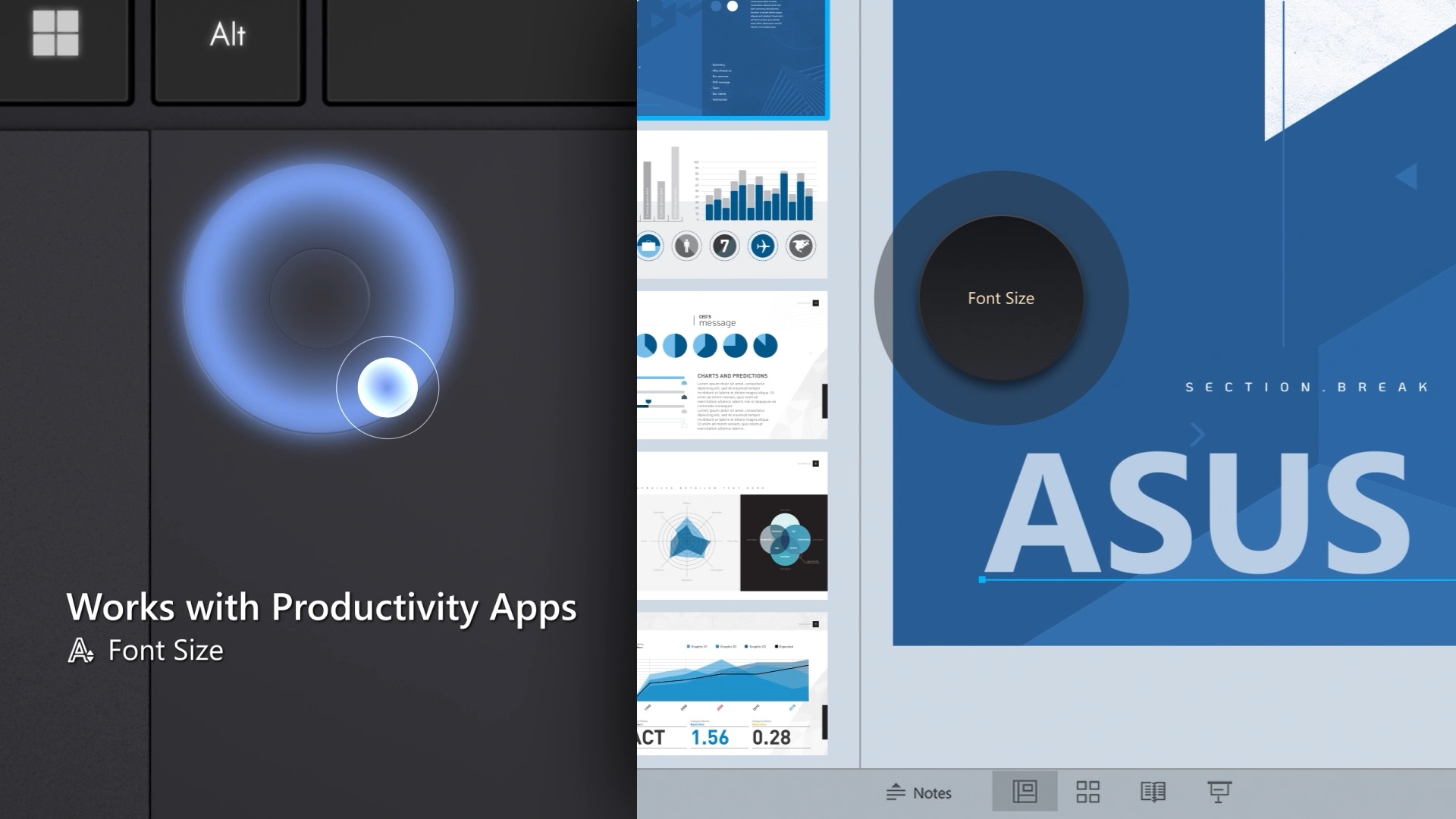 Objevte nové způsoby práce s exkluzivním ASUS DialPad, intuitivním fyzickým ovladačem, který vám umožní okamžité a přesné ovládání parametrů v kreativních aplikacích konečky prstů. Můžete snadno měnit velikost štětce nebo se rychle vrátit o krok zpět, abyste mohli plynuleji pracovat. Je plně přizpůsobitelný - a funguje s celou řadou aplikací!