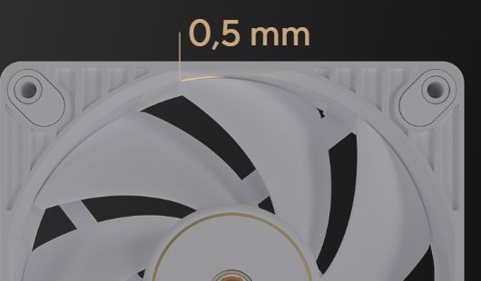 Přesná paralelní mezera 0,5 mm mezi lopatkou ventilátoru a rámem zvyšuje účinnost proudění vzduchu a zároveň minimalizuje turbulence a hluk.