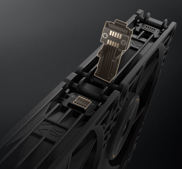 Snadnou instalaci ventilátorů a správu kabeláže umožňují patentované konektory typu Daisy-chain, které zajišťují spolehlivé a vibrace tlumící propojení mezi ventilátory. Konstrukce typu Daisy-chain umožňuje uživatelům propojit více ventilátorů pomocí jediného kabelu, což šetří čas a námahu a zároveň vytváří přehlednější a efektivnější PC.
