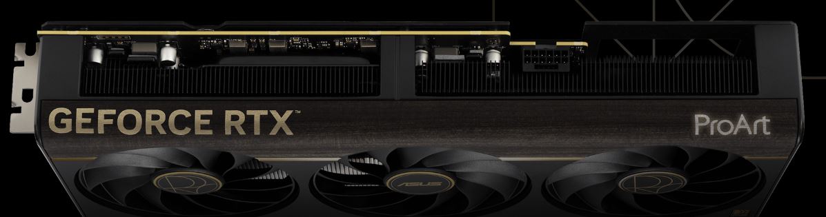ProArt GeForce RTX™ 5080 kombinuje kompaktní 2,5slotový design s výkonným chlazením – třemi ventilátory Axial-tech, odpařovací komorou a tepelnou podložkou s fázovou změnou GPU – a poskytuje tak výkon řady GeForce RTX 50 jak pro plnohodnotné sestavy typu věže, tak i pro prostorově úsporné sestavy SFF. Port USB Type-C® zvyšuje všestrannost při vytváření obsahu, zatímco laminátové lišty se vzorem dřeva a nenápadné logo Aura-lit pomáhají zajistit vytříbený estetický vzhled.