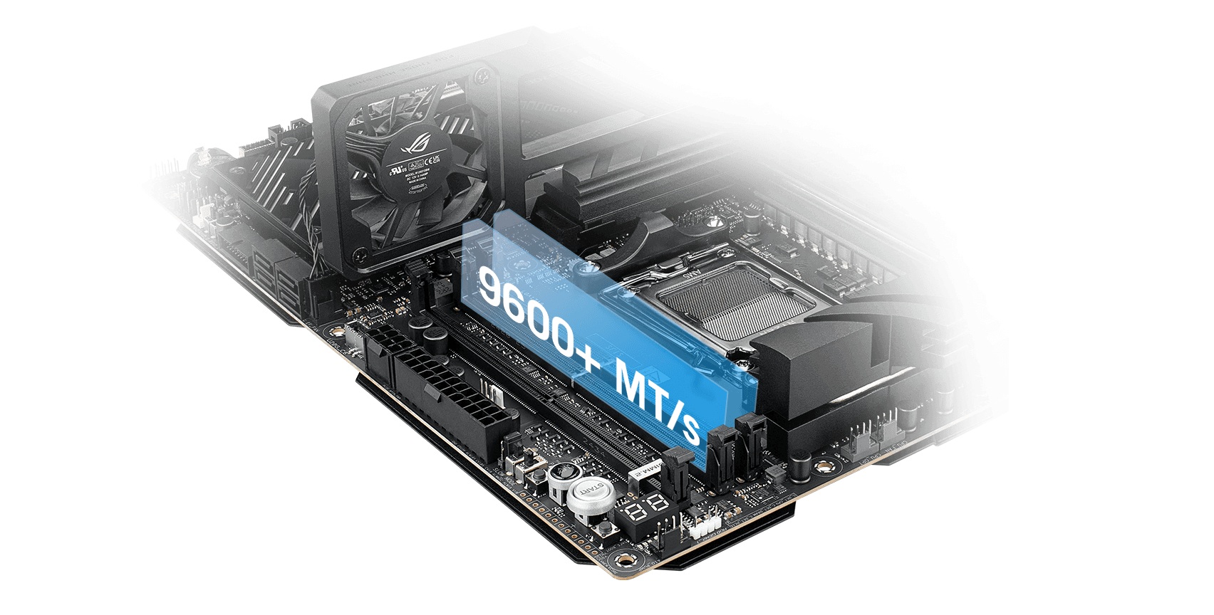 Pro ty, kteří chtějí překonat standardní rychlosti DDR5, je ROG Crosshair X870E Apex připravena na sady pro nadšence díky rozsáhlé podpoře AMD EXtended Profiles for Overclocking (EXPO). Zkušení veteráni mohou dále vylepšovat výkon pomocí rozsáhlé škály nastavení v UEFI. ROG Crosshair X870E Apex je také vybaven sadou ROG Memory Fan Kit – chladicím řešením, které zvyšuje stabilitu DDR5 a umožňuje přetaktování paměti. Se sadou ROG Memory Fan Kit mohou vaše moduly DDR5 posunout hranice a dosáhnout přetaktovacích rychlostí přes 9000 MT/s. Vyzkoušejte vynikající chladicí výkon a snadno uvolněte plný potenciál své paměti.
