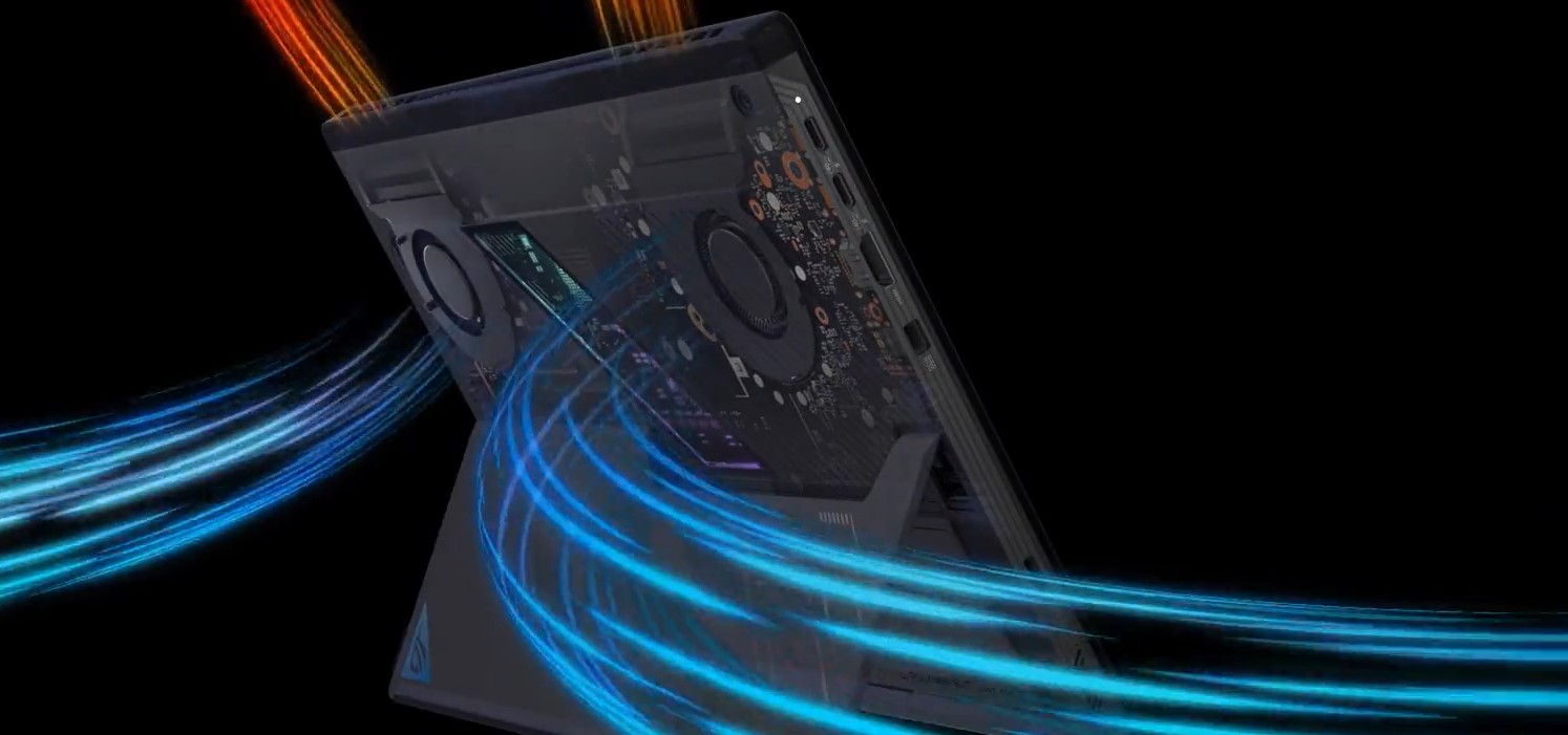 Chlazení je klíčovým faktorem pro výkon herního stroje. Flow Z13 má proto v rukávu několik triků, aby zůstal chladný i v zátěži. Jako tablet těží ze své vertikální orientace, protože u sacích ventilátorů nemá žádné překážky, jako je stůl, a má proto neomezený přístup k chladnému vzduchu. Vylepšili jsme odpařovací komoru, změnili materiál i uspořádání, aby lépe zachycovala odpadní teplo, a dokonce jsme zvětšili otvory pro přívod vzduchu. Bez ohledu na to, jaké hry hrajete, už nikdy nebudete rušit své spolubydlící hlukem.