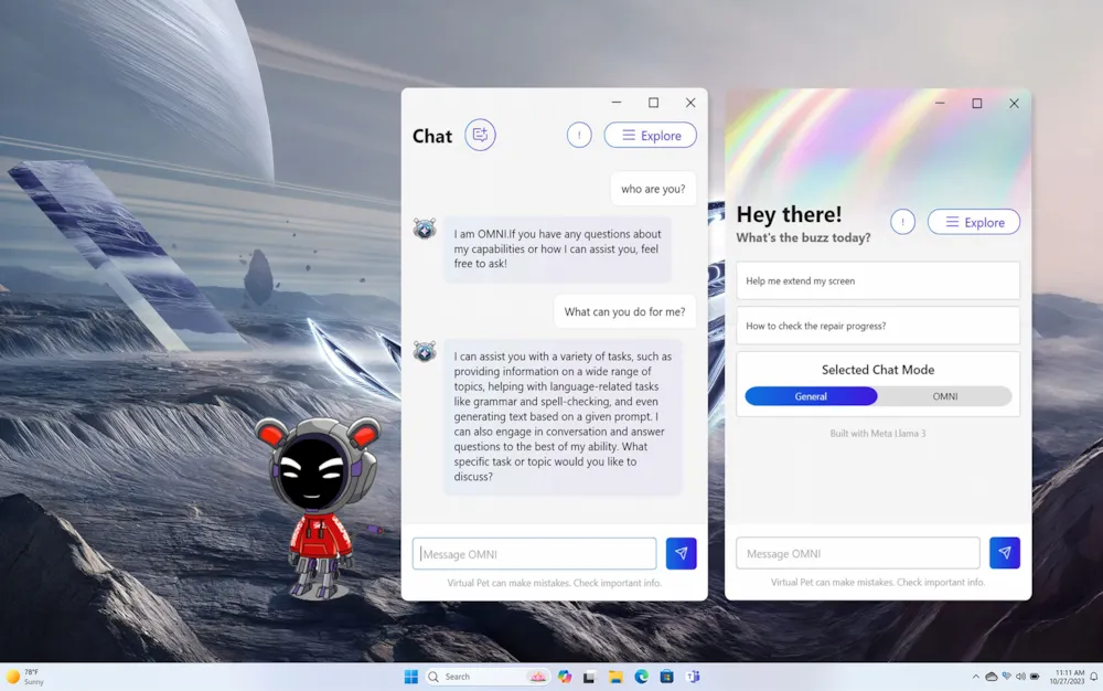 Flow Z13 nabízí podporu našeho nového nástroje Virtual Assistant využívajícího AI, díky němuž budete efektivnější než dříve. Funkce inteligentního chatu vám pomůže s ovládáním neznámých programů, funkce Librarian dokáže rychle shrnout obsah i kontext rozsáhlých dokumentů a funkce hlasového přepisu umí rychle a přesně přepsat zápis z jednání nebo hlasové poznámky a zjistit to nejpodstatnější z konverzace. Všechny tyto funkce využívající AI, které jsou k dispozici výhradně v noteboocích s procesory AMD Ryzen™ AI řady 300, fungují lokálně, což zaručuje soukromí a bezpečnost dat. V modelu Flow Z13 se 128 GB sjednocené paměti je asistent schopen zpracovat 70 miliard parametrů umožňující pokročilejší argumentaci.