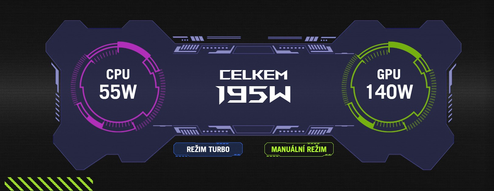 Strix G16 je vybaven nejvýkonnějším herním hardwarem na světě přímo z výroby. Značka ROG však s laděním výkonu tohoto zařízení neskončila. V režimu Turbo má procesor AMD Ryzen™ 9 9955HX3D výkon 55 W, zatímco grafika NVIDIA® GeForce RTX™ 5070 Ti pro notebooky má výkon působivých 140 W. Při konfiguraci v manuálním režimu lze procesoru přidělit dalších 20 W, takže celkový výkon počítače je neuvěřitelných 215 W. Důvěřujte značce ROG, která vám nabídne dokonalý herní stroj.