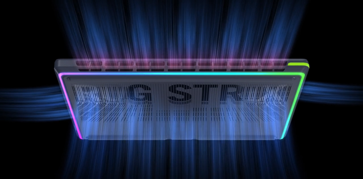 Kompletně jsme přepracovali řešení chlazení u modelu 2025 Strix G16, abychom zajistili, že si s počítačem pokaždé užijete ty nejlepší herní zážitky. Všechny ventilační otvory jsme přemístili na zadní stranu pantu, aby se teplý vzduch nedostal k ruce, ve které držíte myš. Boky a dno stroje slouží jako přívod vzduchu a vytvářejí přirozenou a účinnou cestu pro proudění vzduchu. Vzduch proudí i skrz klávesnici, aby byla během intenzivních herních akcí chladná na dotek. Díky propojení odpařovací komory s chladičem, technologií Tri-Fan a tekutým kovem Conductonaut Extreme na CPU a GPU dosahuje notebook 2025 Strix G16 ve srovnání s předchozí generací nižší úrovně hluku v režimu Turbo. Stále přitom nabízí stejnou dokonalost, jakou očekáváte od stroje Strix.