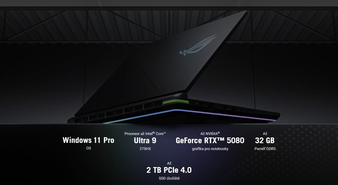Hrajte s jistotou díky systému Windows 11 Pro a procesoru až Intel® Core™ Ultra 9 275HX. Notebook 2025 Strix G18 se opírá o grafickou kartu až NVIDIA® GeForce RTX™ 5080 pro notebooky a až 32 GB operační paměti DDR5-5600. Má proto dokonalý výkon, který vám umožní hrát hry na maximum. Díky dalším funkcím, jako jsou technologie NVIDIA Max-Q, včetně Advanced Optimus, NVIDIA DLSS 4 s Multi Frame Generation a 2TB SSD PCIe Gen 4, je Strix G18 silou, se kterou je nutné počítat.