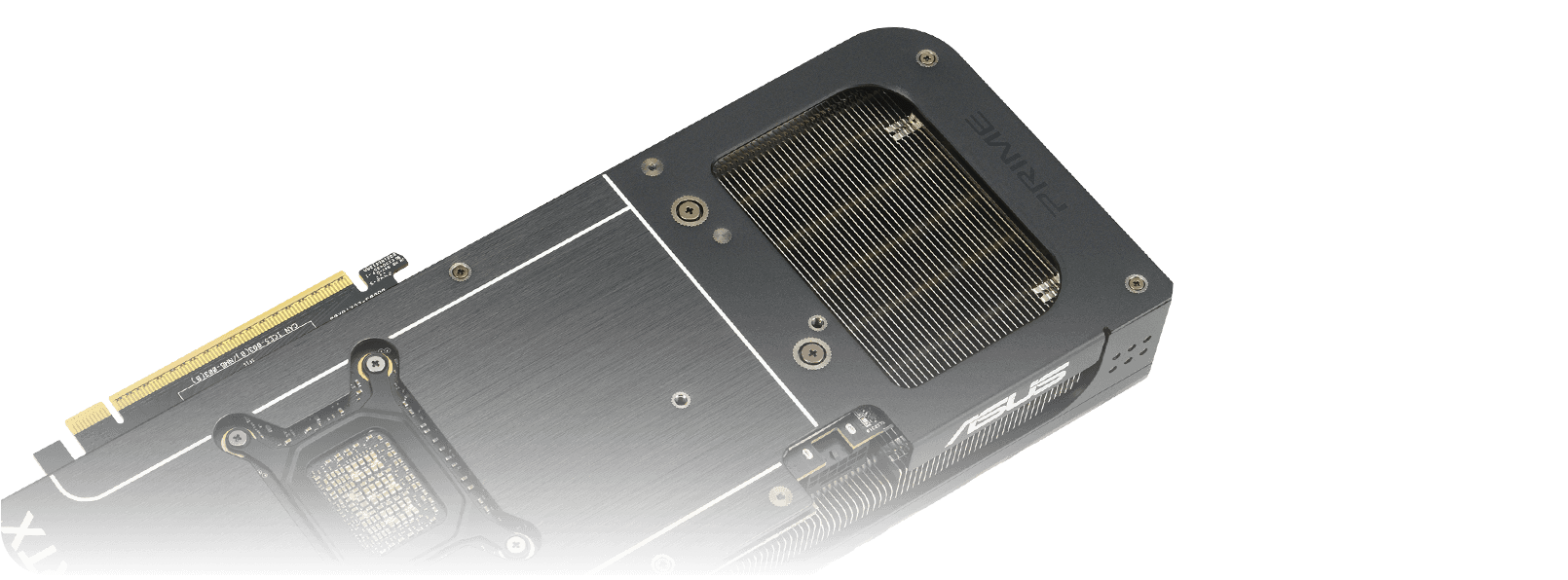 Velké větrací otvory na backplate výrazně zlepšují odvod tepla a pomáhají zachovat GPU chladnější při intenzivních úlohách. Toto dodatečné proudění vzduchu pomáhá zajistit optimální teploty, zvyšuje výkon, životnost a stabilitu, protože brání přehřátí a tepelnému throttlingu.