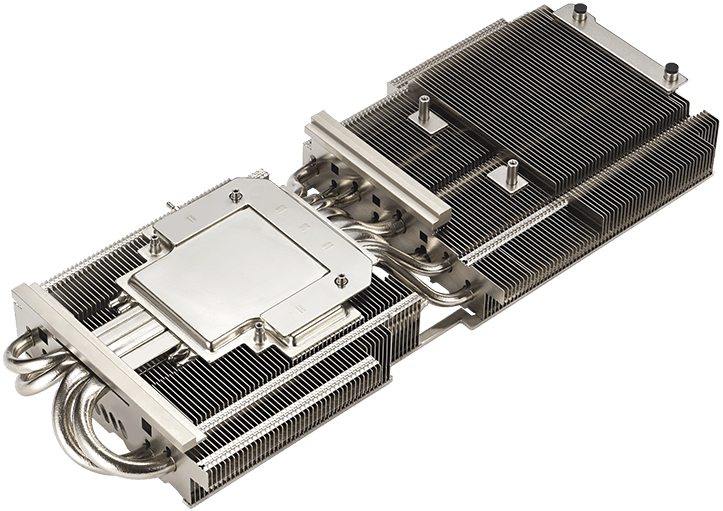 Větší a lepší. Ventilátory Axial-tech se otáčejí na dvojitých kuličkových ložiscích a byly zvětšeny, aby proháněly více vzduchu skrz kartu, což vede k nižším teplotám, menšímu hluku a vyššímu výkonu.